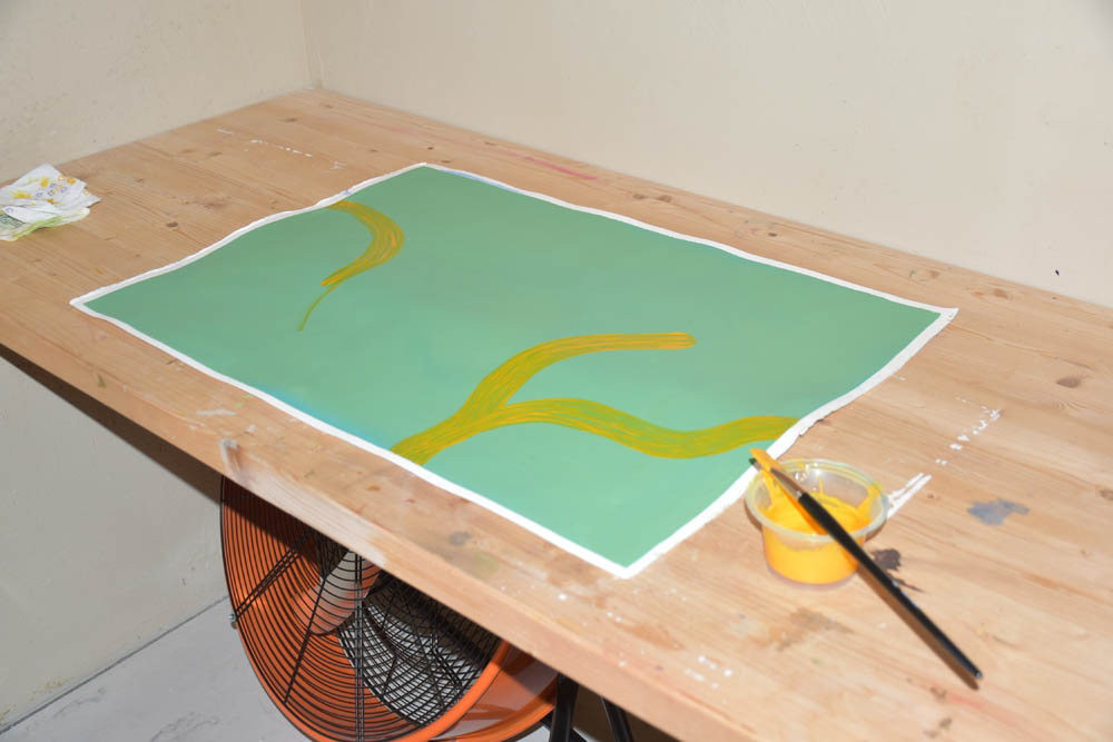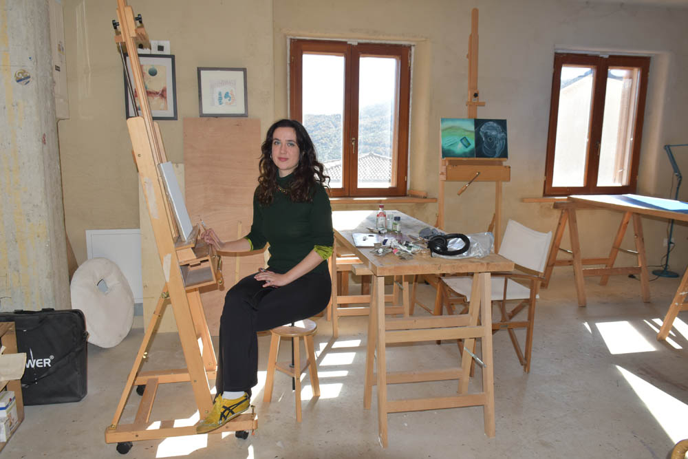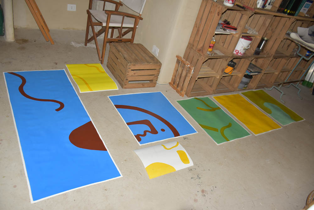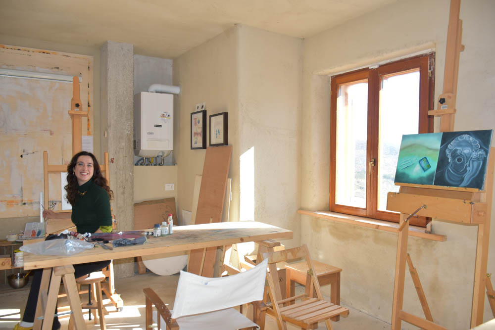 De volta ao estúdio. Eu e a Karolina cruzamo-nos nesta hora – a Karolina prefere pintar de manhã, daqui a pouco ir-se-á embora, e eu ficarei a pintar até à hora de jantar. Aquelas duas telas à direita são suas – está a criar uma série de pinturas sobre o tema “Diego Maradona”, explicou-me. Este jogou no clube SSC Napoli e é adorado em Nápoles. Maradona chegou ao Napoli em 1984 e rapidamente ajudou o clube a conquistar títulos que nunca antes tinha alcançado — nomeadamente o primeiro “scudetto” da sua história (campeonato italiano) em 1987 e outro em 1990. Isto transformou o clube e a cidade. Para muitos napolitanos, Maradona representou mais do que futebol: tornou-se um herói popular, um símbolo de esperança e afirmação de Nápoles, cidade com desafios sociais e económicos.
