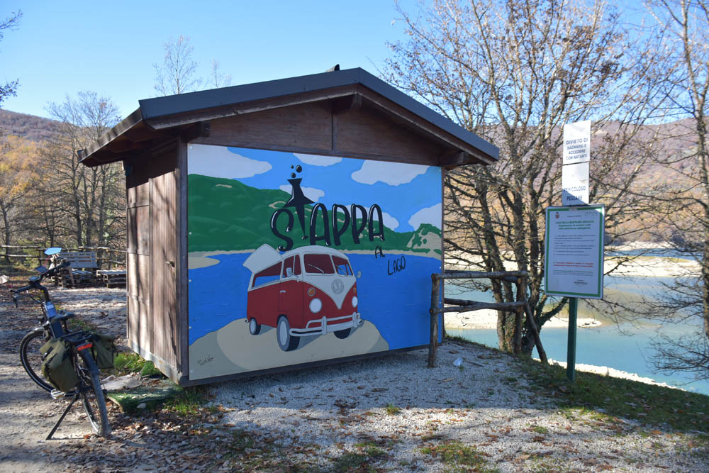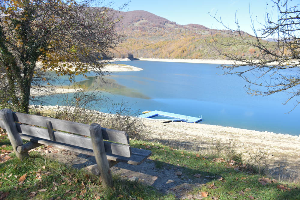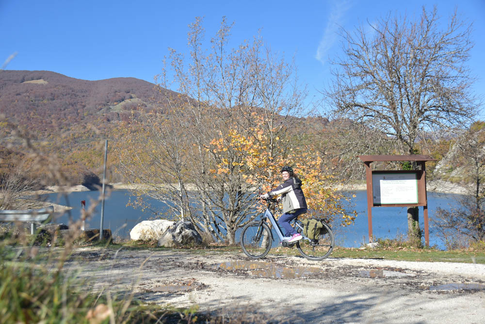 Hoje tenho um destino: Lago della Montagna Spaccata, que fica a 15 km de distância. Foi a Piera quem me indicou este local na aplicação do “Maps.me”, no telemóvel, ontem durante o jantar, depois de eu lhe pedir sugestões de percursos.
