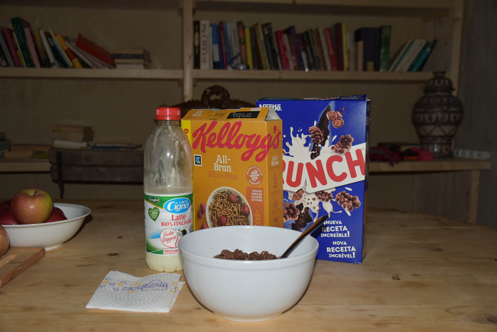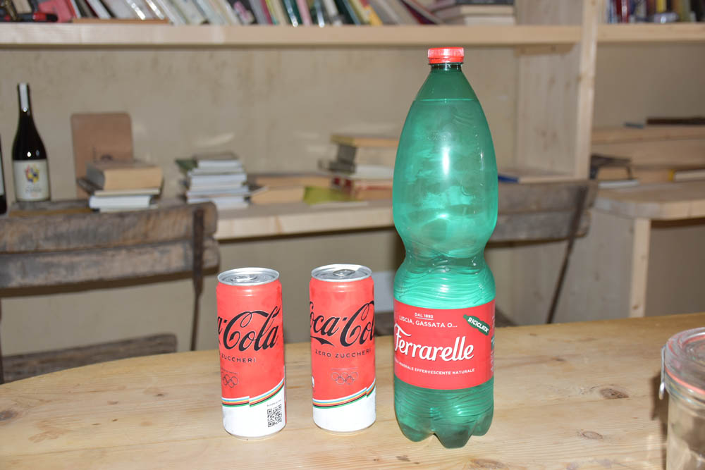 Também me deixaram estas duas Coca-Colas, água com gás e uma bebida de aveia, que se vê no dia 1 (que eu não gostei e levei para a casa da Piera, para quem quisesse bebê-la). Até gosto bastante de água com gás, mas esqueci-me completamente de bebê-la, durante a residência. Tinha que tirá-la do frigorífico, e nunca me lembrei de tal. Vai ficar tudo como está, exceto uma lata de Cola, que vou beber agora à sobremesa. Mas não consegui acabá-la.
