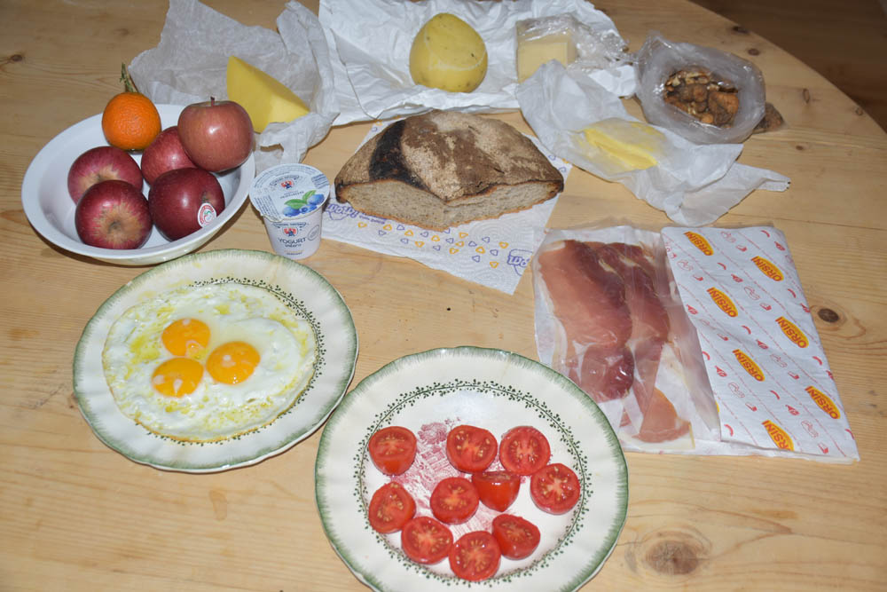 Finalmente comi a maçã que trouxe de Portugal. As outras quatro, da residência, ali ficaram. Ainda fui buscar mais duas tangerinas à porta da Piera. Pus o presunto na mesa, mas não o comi. E lá comi um bocadinho de pão, molhado nos ovos estrelados. Aqueles tomates com sal são deliciosos, muito doces.