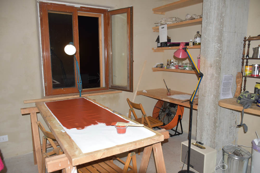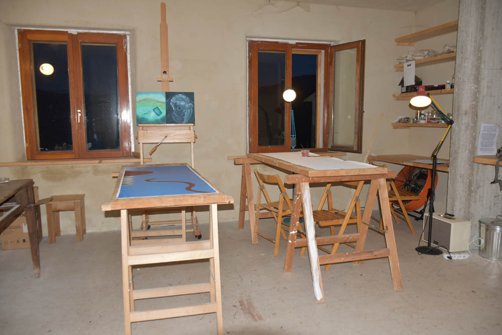 Se não pinto tudo a óleo, logo desde as primeiras camadas, é apenas porque preciso de avançar nas pinturas, e não posso estar eternamente à espera que elas sequem. Ou então teria que ter um estúdio gigante, em Portugal, para avançar noutras, enquanto as primeiras secassem. E nestes 14 dias da residência Frenkiel & Ponti, convém despachar-me. Não há obrigatoriedade nenhuma de apresentar obras no final – isto é muito importante referir. A Fundação Frenkiel & Ponti tem uma filosofia muito própria, de trabalho, e não exerce qualquer tipo de pressão sobre os artistas, nesse sentido – de terminar obras e de fazer uma exposição final. Nem está prevista exposição nenhuma. Nem há obrigatoriedade nenhuma de oferecer uma obra, no final. Conforme explica no seu website, a Fundação Frenkiel & Ponti procura estar à margem de todas essas regras e imposições.