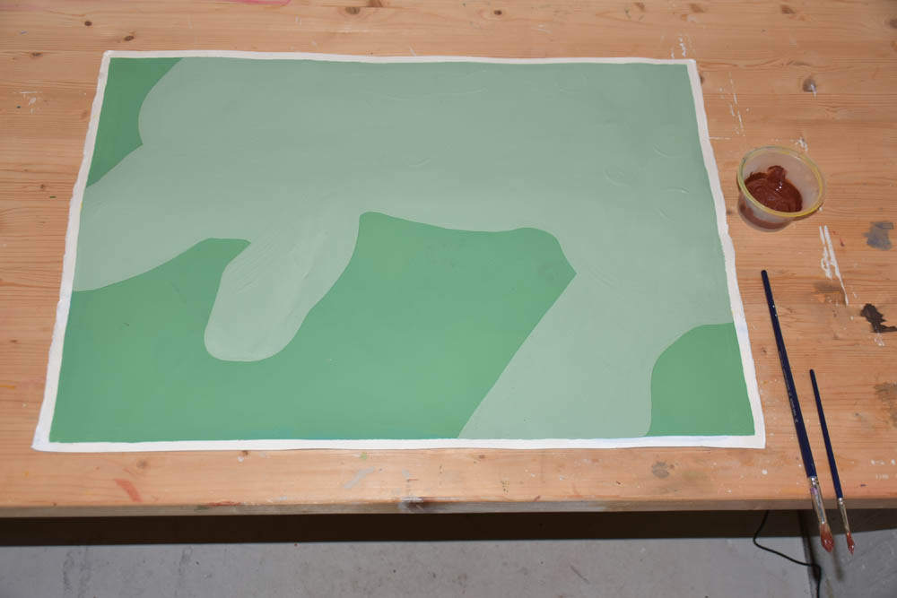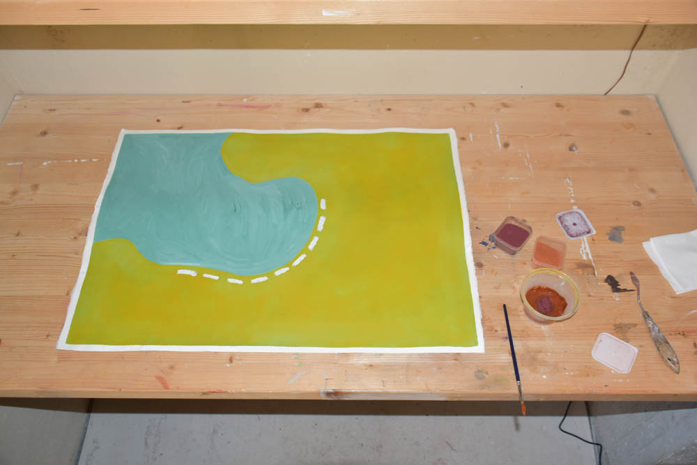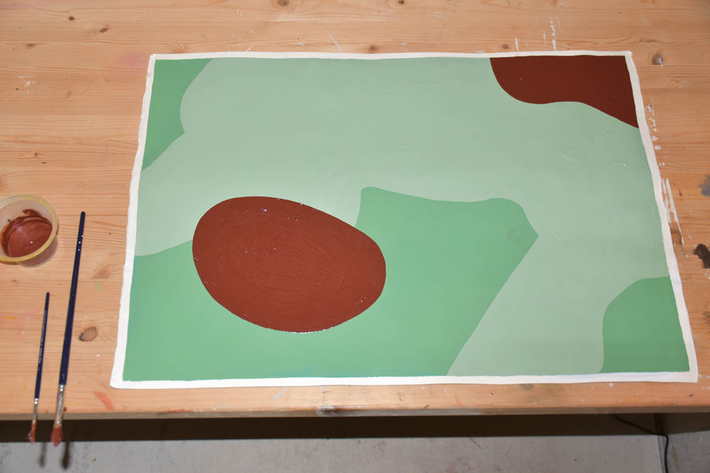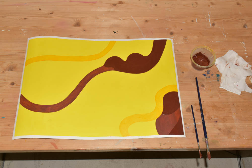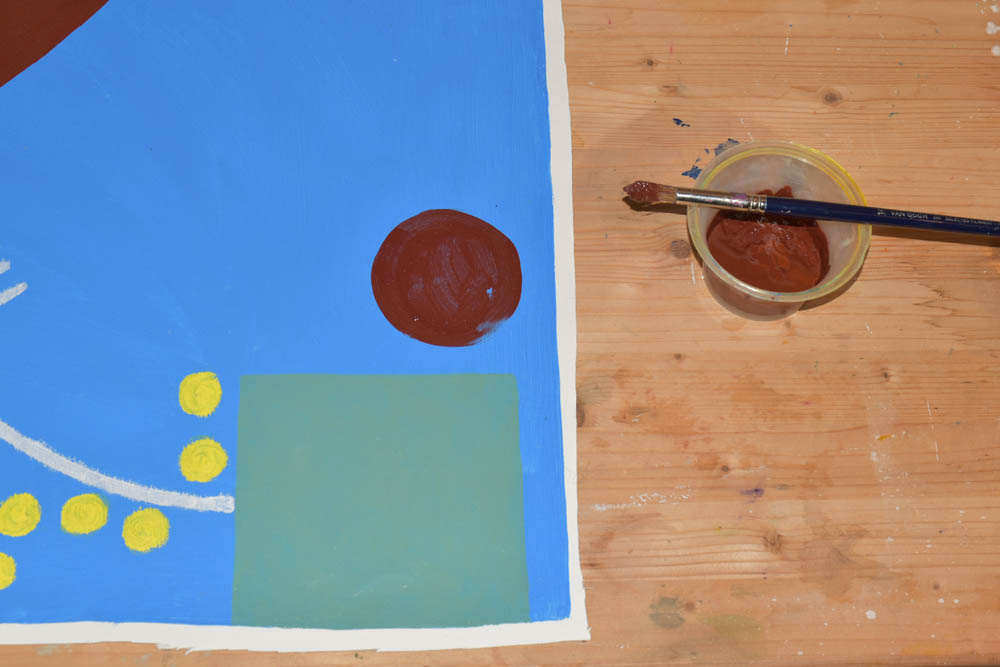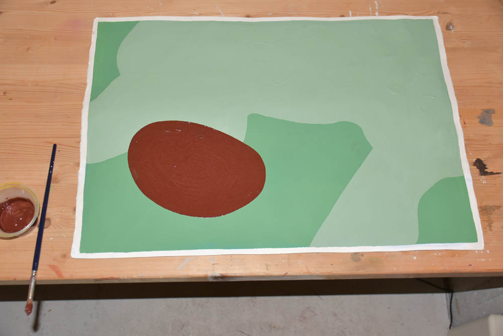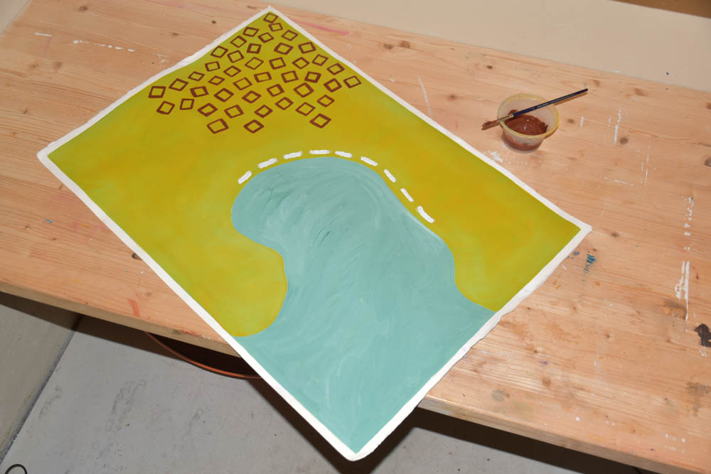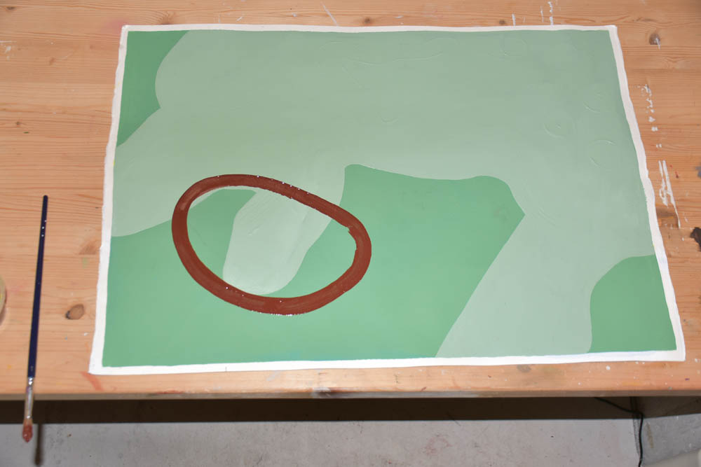 Hoje só me apetece pintar com castanho. Terra. Quero tudo castanho. E voltei ao óleo. Misturei-lhe um secante, para ver se consegue estar completamente seco antes da residência terminar, no domingo, dentro de cinco dias. Mas o quinto dia já não conta – porque parto de manhã, e tenho que empacotar tudo no sábado. Não convém as pinturas ficarem todas coladas umas às outras, dentro da minha mala.