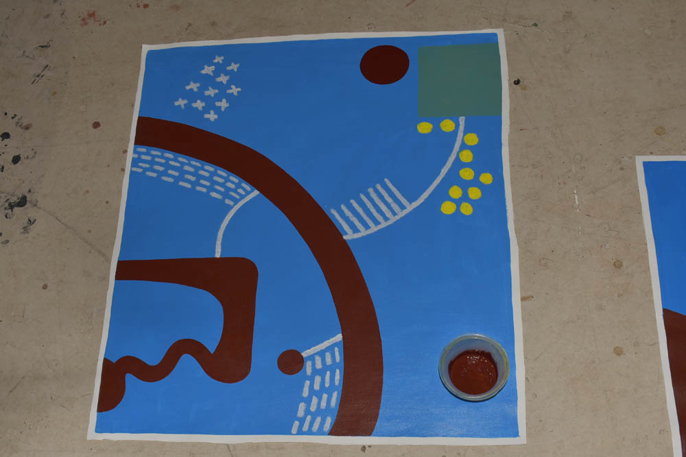 Deixo portanto as pinturas em acrílico para os próximos dias. A Karolina, como não trabalha a acrílico, e usa camadas espessas de óleo, já teve que parar de pintar. Irá partir no sábado, ademais.