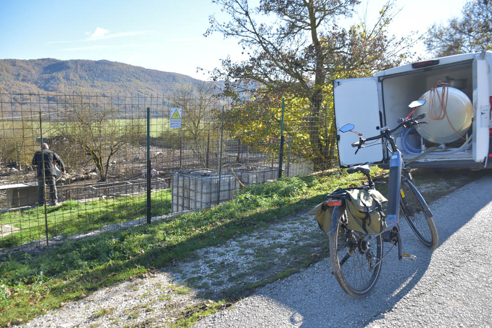 Agora sigo a carrinha do Albino, que vai mostrar-me os seus animais, que vivem junto ao Pantano. Perguntou-me se eu queria ir pelo caminho mais curto, ou pelo mais longo. Eu escolhi o mais longo, com 6 km. A Piera já me tinha sugerido este caminho mais longo, na bicicleta, e eu já tinha tentado fazê-lo – entre o Pantano e a aldeia, no entanto fui perseguida pelos cães das quintas, pelo que dei meia volta e fugi, não cheguei a fazê-lo. Agora, atrás da carrinha do Albino, os cães só deram conta de mim quando eu já estava a passar, e perseguiram-me na mesma, e eu dei-lhes um berro. Nem o Albino nem eu parámos, claro, foi sempre a andar, e os cães acabaram por largar-me. São perigosos, os cães, porque uma dentada não mata ninguém, mas a perna e os músculos podem ficar com sequelas chatas para o resto da vida, como eu já soube de alguns casos.