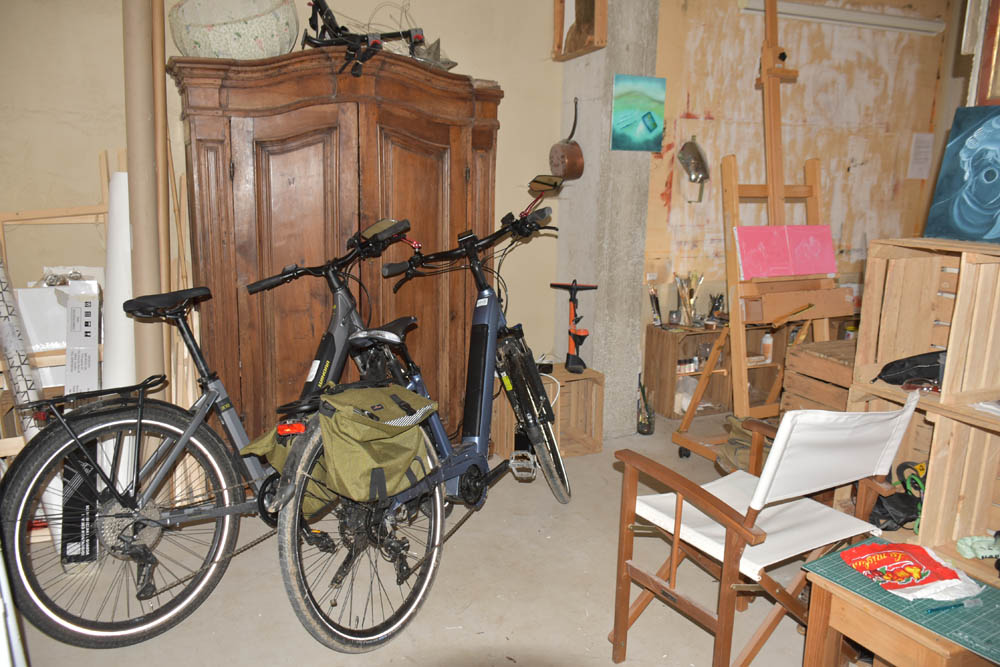 A casa onde eu estou alojada, bem como os estúdios, ficam ali ao pé da torre bicuda. Ainda bem que tenho uma bicicleta elétrica para subir isto tudo.