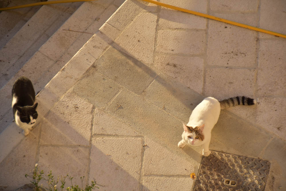 Estes dois estavam a uivar um ao outro, debaixo da minha janela, e eu fui tentar acalmar as hostes.