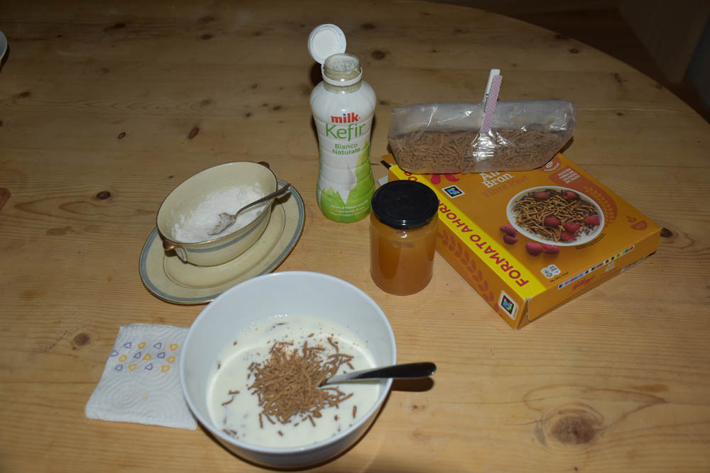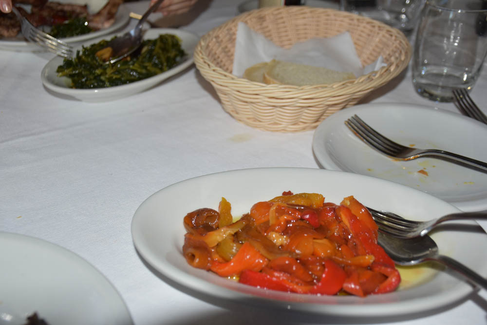 Estou a tirar as fotos demasiado perto dos pratos. E porquê? Porque a menina Rute não quer levantar-se e afastar-se. Mas foram tantos pratos – foi uma procissão tal – que eu teria de levantar-me muitas vezes. E faltou fotografar as batatas assadas. Tudo absolutamente delicioso, claro.