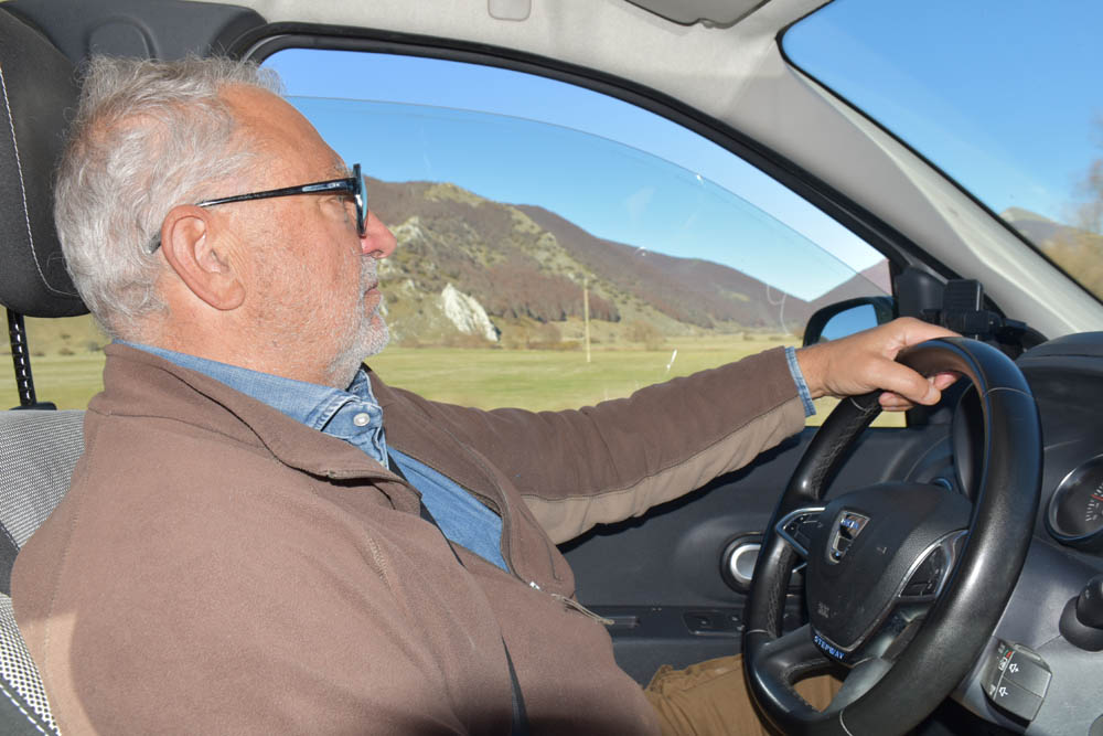 O Giuseppe aponta-nos a montanha mais alta dos Apeninos, à nossa frente: o pico Corno Grande, que atinge 2912 metros de altitude.