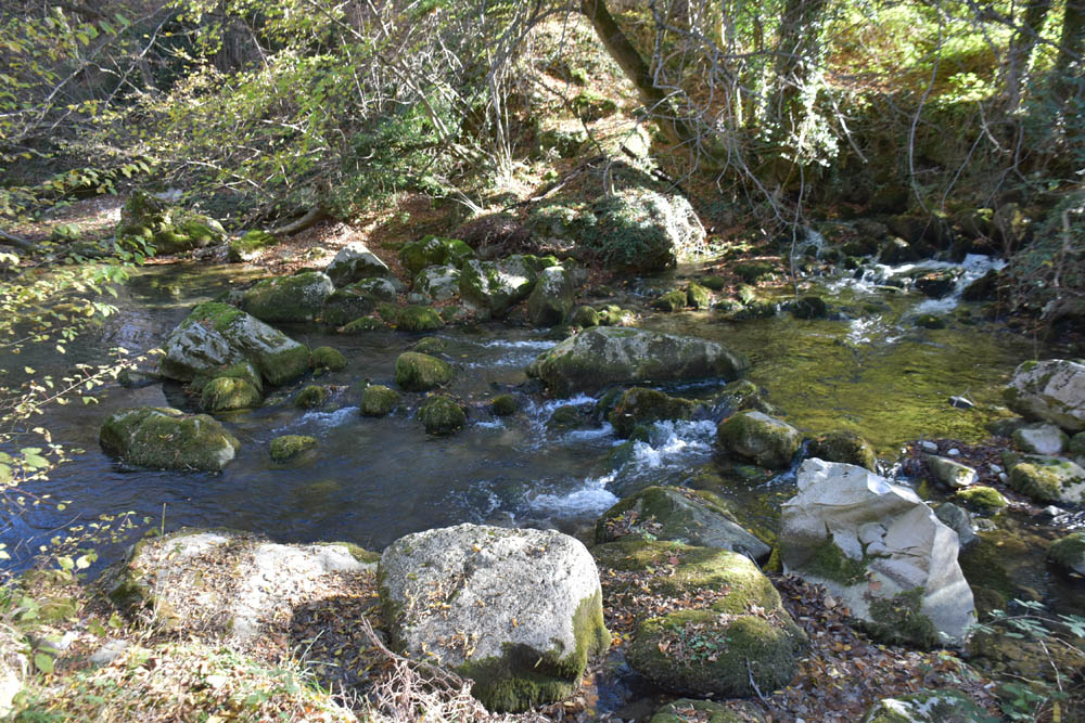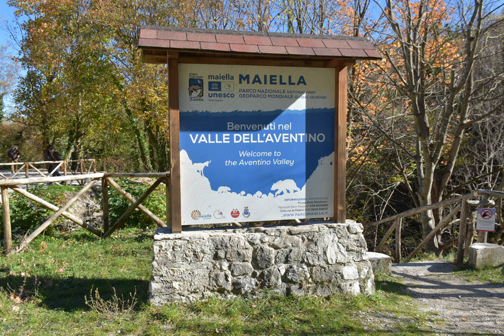 Sorgenti dell’Aventino, ou, em português, a nascente do Aventino. A água provém do degelo e da precipitação nas montanhas, drenando pelos diversos riachos da área, e juntando-se com outros cursos de água antes de emergir aqui. Nesta zona foram encontrados muitos fósseis de há sete milhões de anos: restos paleobotânicos atestam a presença de salgueiros, ciprestes e outras árvores, além de pequenos mamíferos, incluindo o prolago.¹ O prolago, hoje extinto, estava dentro do grupo que inclui lebres e coelhos.