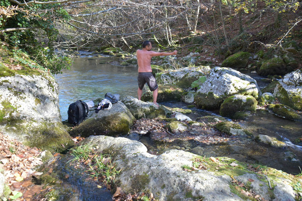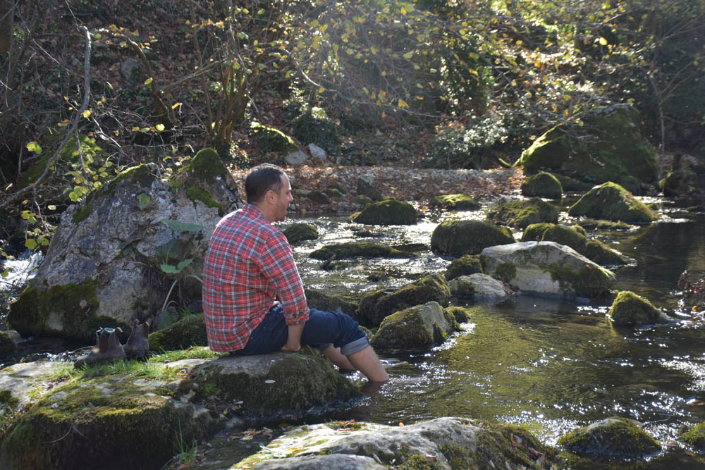 De volta à nascente. Fizemos 20 ou 30 minutos de caminhada, e já foi uma grande estafa, subir a montanha.