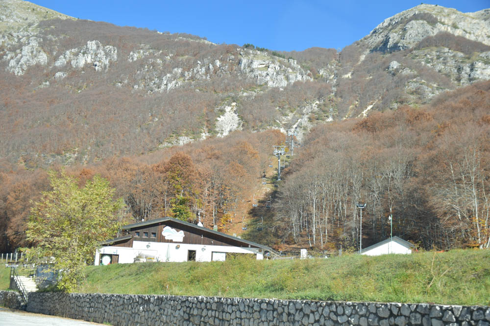 Teleférico. Estamos a passar em Campo di Giove, uma zona de esqui.