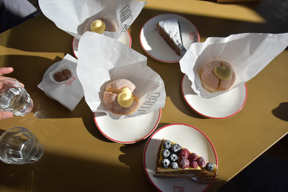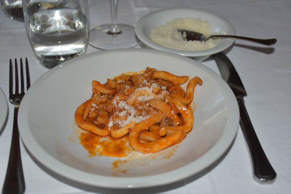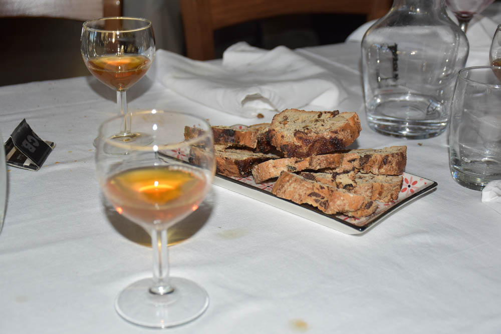 Genciana, um digestivo típico desta região: é um licor tradicional feito a partir da raiz da planta genciana (Gentiana lutea), que cresce sobretudo em regiões montanhosas a partir de cerca de 1300 metros de altitude — como os Apeninos, os Alpes e os Pirenéus. É intensamente amarga. E aquelas fatas de bolo são muito rijas e secas. Sendo um digestivo tão bom (ativa a digestão; reduz a sensação de enfartamento; alivia o estômago), eu bebi-a toda e comi uma das fatias do bolo. É sempre espantosa a quantidade de comida que conseguimos meter dentro da barriga.