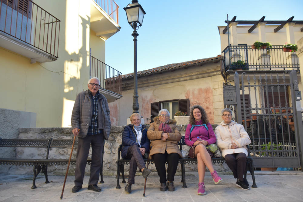 Claro que tive de tirar uma foto com eles: além do Carmine, à esquerda, a Rine, a Luisa, eu e a Pina. Hoje não consigo ficar aqui um bocadinho a falar com eles. Está a anoitecer e quero ir ao castelo antes de partirmos. Despedi-me.