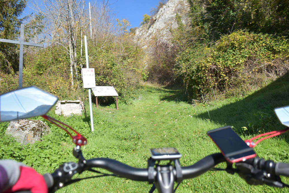 Aquela cruz é um bom prenúncio do que me espera. Aqui jaz RUNA, por ter seguido este caminho numa bicicleta elétrica.