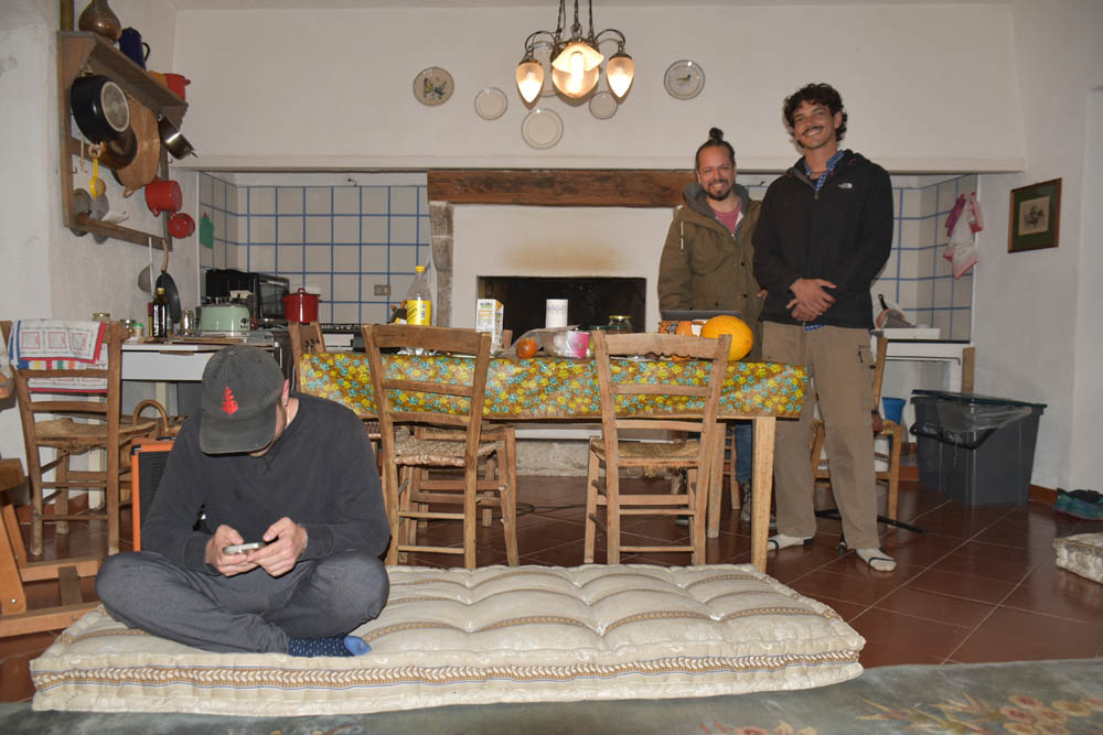 Hoje há novamente uma meditação em casa do Lalo e do Gabriel, orientada pelo Lalo, à semelhança do que fizemos no dia 4. E hoje temos uma visita: o Emiliano Ramaioli, que é aqui de Itália, de Pavia, e que estava a passar umas horas em Montenero. Encontrou a Sara e a Karolina no Pantano e decidiu ficar uma noite. Vai fazer a meditação também e vai jantar connosco.