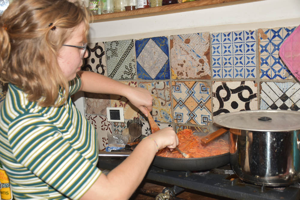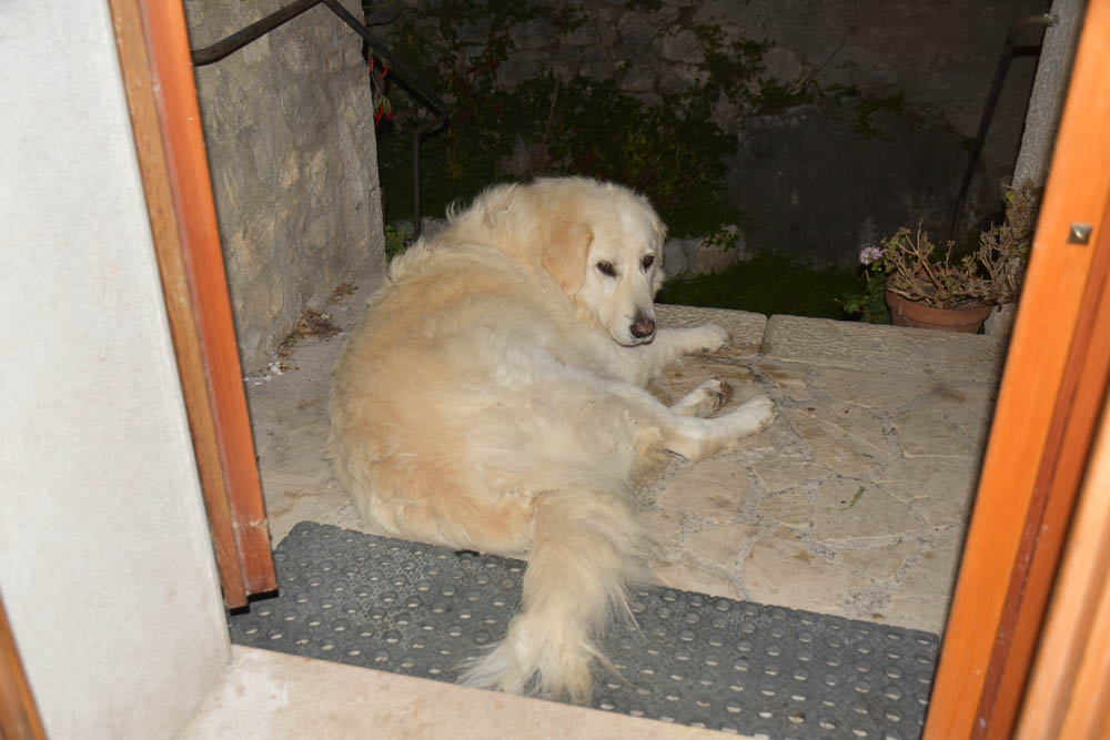 O Giuseppe foi-se embora hoje de manhã, e quem ficou a tratar do jantar foi a Sara. A Moka esconde-se atrás das suas pernas. Não aceita mais ninguém.