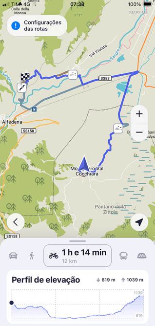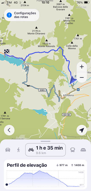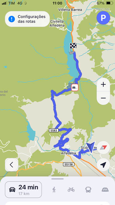 Dormi nove horas entre as 21 e as 6. E teria adormecido mais cedo se não tivesse estado a investigar percursos para a bicicleta, para fazer hoje. Decidi que quero ir ao Lago di Barrea, mas não quero repetir os mesmos caminhos que já fiz. Tenho de repetir parte do caminho de Alfedena, que tem muito trânsito. Até ajuda ao Chat GPT pedi. Deu-me uma série de opções que eu já visitei, mas sugeriu visitar a povoação de Scontrone, que já o Luigi, o Vittorio e os restantes montenerenses me tinham sugerido, na praça. Em vez de ir para Alfedena, subo a montanha e vou para Scontrone. Depois a partir de Scontrone irei para o Lago di Barrea. Não há caminhos de bicicleta entre estes dois – Scontrone e Lago di Barrea – na aplicação do Maps.me. Só há a estrada dos automóveis, e um caminho para peões – e eu vou arriscar fazer este último, porque prefiro sempre ir pelo campo. Em último caso volto para trás, se não conseguir fazê-lo. Os caminhos para peões incluem escadas, por exemplo. Ou saltar cercas. Com a minha bicicleta de BTT, mais leve, frequentemente eu agarro-a e levo-a na mão (em vez da bicicleta me levar, levo-a eu a ela!), mas com esta elétrica, pesadíssima, isso é um esforço que certamente não será possível para mim. É um risco, portanto, seguir este caminho para peões – mas vou arriscar. Serão ao todo 22 km para lá, e outros 22 para cá.