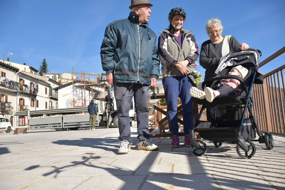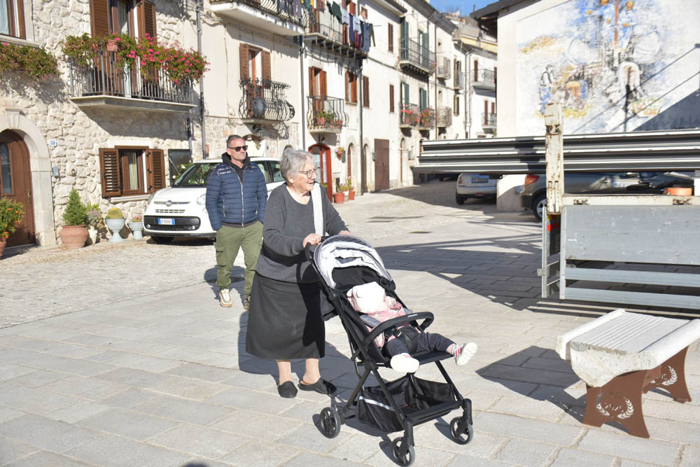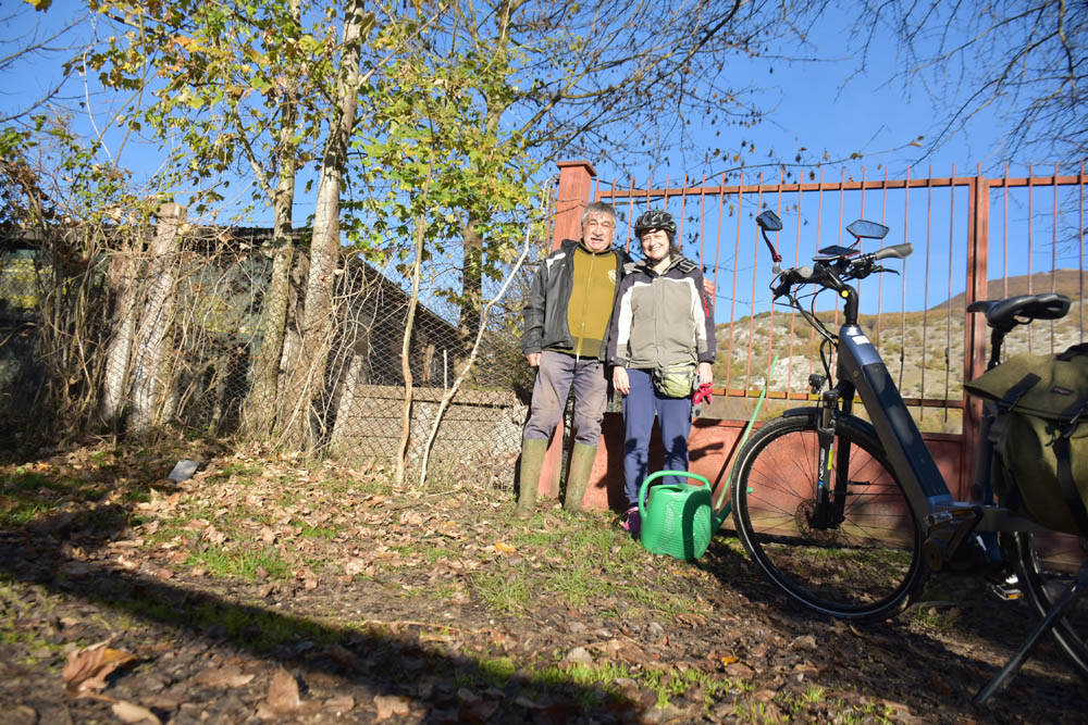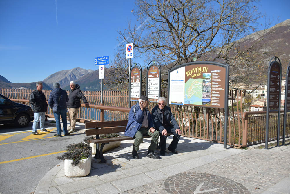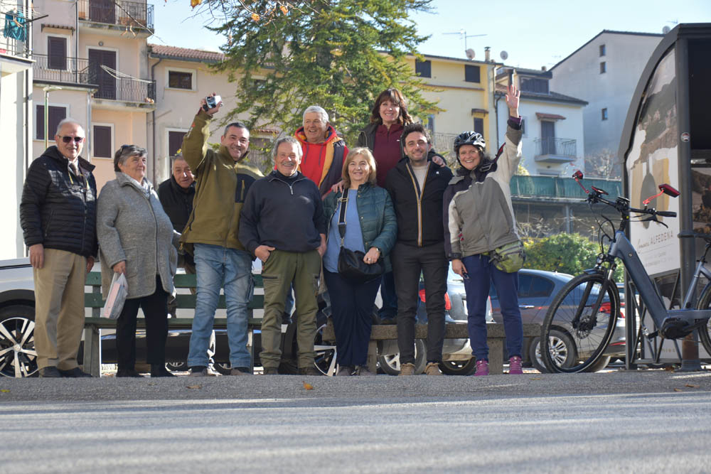Já estou em Alfedena novamente, e deparo com este grupo sentado à beira da estrada. Claro que parei e meti-me com eles. Desta vez não fiquei com os nomes de todos – mas apenas o do Pino, com o telemóvel no ar, que é casado com a senhora que está em pé em cima do banco. São todos daqui exceto o Pino, que é de Roma, mas a sua mulher é aqui de Alfedena e têm em casa aqui. Têm um filho nas Canárias, disse-me. Ficaram com o meu Whatsapp para eu lhes enviar esta foto, e entretanto estão todos a acompanhar estas crónicas, acho eu! Adeus a todos! 😄👋