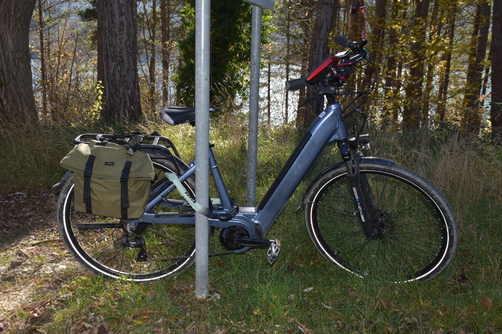 São 14h33 e eu ainda tenho um traço na bateria da bicicleta. Desde as 7h30 que estou a andar. A bateria aguentou 7 horas em percursos exigentes, com muitas subidas, e andei sempre na potência máxima: nível 5.